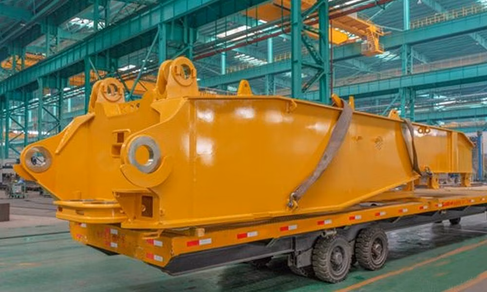 Esta parte es la plataforma giratoria de la grúa de oruga. Su proceso de producción es complicado, necesita pasar por tres empalmes y tres soldaduras, finalmente necesita ser mecanizado en su conjunto.